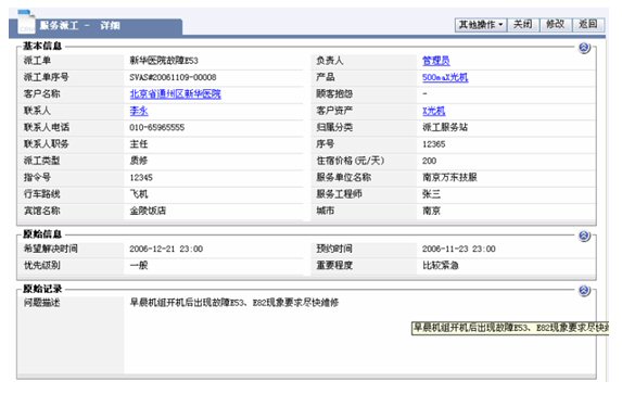 記錄需要上門服務(wù)的客戶問(wèn)題、希望解決時(shí)間等問(wèn)題。并實(shí)現(xiàn)企業(yè)的服務(wù)派工流程。
