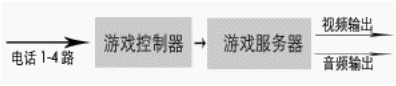 由于許多地區(qū),尤其是縣級(jí)市沒有信息平臺(tái),而且許多電視臺(tái)愿與電話局直接合作。在這種情況下,電話局和電視臺(tái)合作對(duì)有線用戶公布 特服號(hào)碼,如123456,參與互動(dòng)游戲的用戶,統(tǒng)一撥打該號(hào)碼,電話局提供四條用戶線給互動(dòng)游戲系統(tǒng),同時(shí)對(duì)撥打123456的用戶都轉(zhuǎn)到這四條用戶線來,從而接入到互動(dòng)游戲系統(tǒng),由系統(tǒng)給出語(yǔ)音提示引導(dǎo)用戶參與比賽。由于系統(tǒng)最多允許四個(gè)人參與比賽,當(dāng)用戶滿時(shí),撥打游戲熱線的用戶