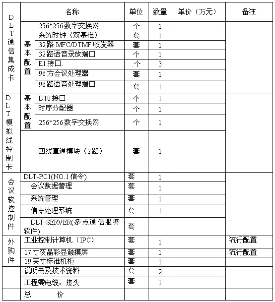 ( 90 方)快速指揮調(diào)度系統(tǒng)配置清單