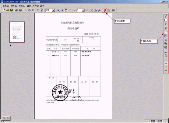 令王總最滿意的是,現(xiàn)在若遇到一些特定的文檔,如需手寫/簽名的文檔契約,就不必將傳真件列印出來(lái),然后再簽名發(fā)送了,可直接用滑鼠(或手寫板)在電腦上就可完成簽名了,大大提高了傳真伺服器的便利性,及文件的保密性真正實(shí)現(xiàn)了電腦化及無(wú)紙化的綠色辦公環(huán)境。