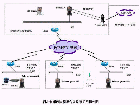 河北郵政會(huì)議電視系統(tǒng)是為滿(mǎn)足郵政自身業(yè)務(wù)的需要并著眼未來(lái)的發(fā)展而建設(shè)的系統(tǒng)。此系統(tǒng)以河北省郵政局為主會(huì)場(chǎng),各市郵政局為分會(huì)場(chǎng)共使用中小型會(huì)議室終端11臺(tái)、中型會(huì)議室終端1臺(tái)、MCU 1臺(tái)及電子白板1個(gè)。直真視通科技有限公司根據(jù)此系統(tǒng)的具體情況和需求,選用美國(guó)Polycom的產(chǎn)品。為河北省郵政局主會(huì)場(chǎng)配置中型會(huì)議室終端和PC機(jī)(用于MCU遠(yuǎn)程管理)各一臺(tái),同時(shí)考慮需要與原國(guó)家局會(huì)議電視系統(tǒng)對(duì)接,配置電子白板用于遠(yuǎn)程培訓(xùn);省郵政綜合網(wǎng)中心為省內(nèi)郵政綜合網(wǎng)的中心節(jié)點(diǎn),MCU放置在此中心,由省局主會(huì)場(chǎng)通過(guò)PC機(jī)實(shí)現(xiàn)遠(yuǎn)程管理;各市局分會(huì)議室配置中小型會(huì)議終端一臺(tái)。