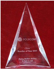 2010年2月,寶利通全球代理商大會(huì)在美國圣地亞哥舉辦,直真視通榮獲“Polycom 2009 亞太區(qū)最大集成商”獎(jiǎng)牌。