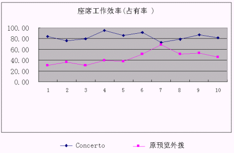 下圖可以看出使用原預(yù)覽外撥和采用Concerto預(yù)測外撥系統(tǒng)后座席占有率的比較: