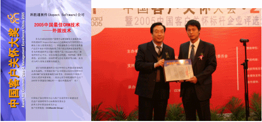 CALL CENTER & CRM ASSOCIATION)頒發(fā)的"2005年中國(guó)最佳CRM技術(shù)--最佳外撥技術(shù)獎(jiǎng)"。