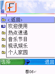 在確認(rèn)你的手機(jī)可以支持富年科技的專用移動流媒體播放軟件后,你就可以到掌景無限的網(wǎng)站上下載對應(yīng)的播放軟件。這款播放軟件的名稱是FondoPlayer,其版本號和界面設(shè)計因所支持的手機(jī)品牌和型號的不同而略有區(qū)別,但是功能則大同小異。下面我們就以諾基亞的6600為例演示一下GPRS手機(jī)看電視的具體方法吧。