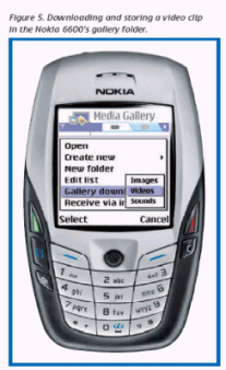 MMS正在步入一個高級功能發(fā)展階段,其中包括信息表達(dá)能力、視頻和內(nèi)容的保護(hù)能力。諾基亞認(rèn)為,由于用戶需要利用他們的個人移動終端去采集和發(fā)送視頻信息,因此用戶需要移動視頻服務(wù)。這種服務(wù)就是將用戶購買或免費獲贈的內(nèi)容發(fā)送的用戶的終端上。移動用戶也可以通過其它途徑來觀看視頻節(jié)目,包括通過瀏覽器進(jìn)行視頻下載和流式播放。這兩種方式都有各自的優(yōu)點,例如,視頻下載允許用戶選擇、本地存儲或回放視頻節(jié)目,而流式播放則可以讓用戶實時播放尺寸較大的視頻節(jié)目。