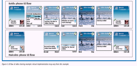 在最近一次諾基亞委托進(jìn)行的IP多媒體研究中顯示,消費(fèi)者喜歡增加了視頻共享的視頻電話,有趣的手機(jī)外觀被看作是非常重要的,而視頻共享也被認(rèn)為是非常有用的,被看作是基于視頻短信的MMS的一個(gè)明顯的進(jìn)步。消費(fèi)者喜歡去共享的時(shí)刻是:例如在假期里,購(gòu)物、舉家外出旅行,或者是一個(gè)周末的夜晚。通過(guò)視頻共享來(lái)展現(xiàn)你的位置及同行人員,可以確保人身的安全。同樣,視頻共享技術(shù)也可以應(yīng)用于商業(yè)領(lǐng)域,如財(cái)產(chǎn)狀態(tài)監(jiān)視和遠(yuǎn)程檢查野外工作等。