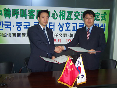 5月19日,在中韓客服中心相互交流協(xié)定儀式上,北京優(yōu)百斯管理咨詢有限責任公司與韓國光州女子大學簽訂了戰(zhàn)略合作協(xié)議,同時也標志著雙方會更加緊密的合作,為促進中韓客戶服務(wù)中心的交流和發(fā)展起到積極的推動作用。