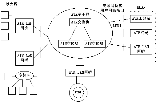 ATM 局域網(wǎng)是指以ATM結(jié)構(gòu)為基本框架的局域網(wǎng)絡(luò),它以ATM局域網(wǎng)交換機(jī)為交換點(diǎn),通過(guò)各種ATM接入設(shè)備,如ATM集線(xiàn)器、ATM網(wǎng)卡等將用戶(hù)接入局域網(wǎng)。ATM網(wǎng)絡(luò)具有帶寬大,速度高的優(yōu)點(diǎn),并能提供業(yè)務(wù)質(zhì)量QOS服務(wù),其性能大大優(yōu)于傳統(tǒng)共享式局域網(wǎng),但同時(shí)也面臨著高速以太網(wǎng)的挑戰(zhàn)。