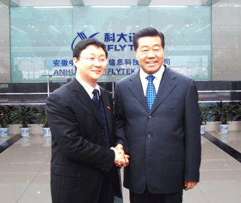 12月19日上午,中共中央政治局常委、全國政協(xié)主席賈慶林一行在安徽省委書記郭金龍、省長王金山等省市領導陪同下來到國家863計劃成果產(chǎn)業(yè)化基地——科大訊飛公司視察,賈慶林主席對科大訊飛在中文語音技術和產(chǎn)業(yè)化方面的成績給予充分肯定。上午8時30分,賈主席一行抵達訊飛語音產(chǎn)業(yè)大樓。中國科技大學黨委書記郭傳杰、科大訊飛總裁劉慶峰博士、基地總工陳濤及基地工作人員熱烈歡迎賈主席的到來。