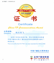 在CIPCA 2009中國(guó)IP通信大獎(jiǎng)的評(píng)選活動(dòng)中,科大訊飛憑借優(yōu)秀的企業(yè)形象和良好的市場(chǎng)口碑,以明顯優(yōu)勢(shì)在第一輪網(wǎng)上投票中脫穎而出;并在第二輪評(píng)選中得到了專家評(píng)委的一致認(rèn)可:由140名業(yè)內(nèi)資深高管組成的評(píng)委會(huì)對(duì)科大訊飛給予了極高的評(píng)價(jià)。最終,科大訊飛以絕對(duì)優(yōu)勢(shì),無可爭(zhēng)議的再次問鼎“中國(guó)IP通信最佳語音識(shí)別技術(shù)提供商(國(guó)內(nèi))獎(jiǎng)”這一重大獎(jiǎng)項(xiàng)。