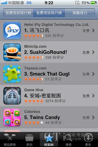 CTI論壇(ctiforum)5月24日消息(記者 張潔):科大訊飛推出的移動互聯(lián)網(wǎng)時代語音創(chuàng)新應用——訊飛口訊,自5月18日登陸App Store為用戶提供免費下載應用以來,迅即得到了國內(nèi)外蘋果手機用戶的高度關(guān)注和熱烈支持,短短兩天時間之內(nèi)即在App Store免費項目排行榜登頂,并已持續(xù)多日占據(jù)榜首位置。排行榜位置是由用戶下載量、實際應用頻率和用戶評價等各項指標綜合評定形成的,充分顯示了廣大“果粉”對于“訊飛口訊”這一創(chuàng)新性應用的喜愛與高度認可。