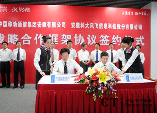 CTI論壇(ctiforum)7月14日消息(記者 張潔):7月11日下午,安徽科大訊飛信息科技股份有限公司與中國移動通信集團安徽有限公司在合肥簽署戰(zhàn)略合作框架協議。根據協議,科大訊飛和安徽移動將在技術和業(yè)務創(chuàng)新等方面開展深層次合作。