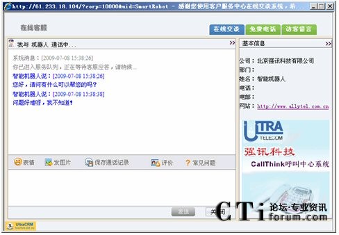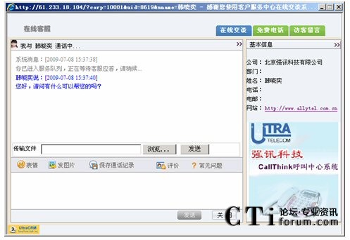 訪客可以通過點(diǎn)擊網(wǎng)站的 “客服”鏈接自動(dòng)選擇交談對(duì)象或點(diǎn)擊“客服人員”進(jìn)行交談。