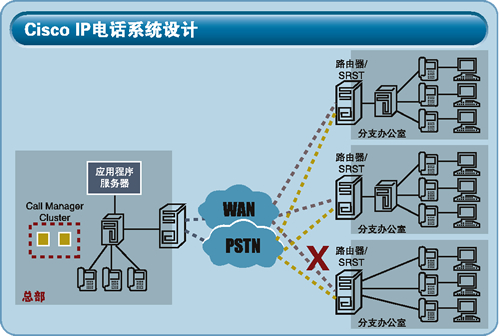 思科公司提供的IP電話系統(tǒng)由IP電話呼叫控制服務(wù)器、IP電話機(jī)和路由器構(gòu)成,是一個(gè)高可用性、功能強(qiáng)大、應(yīng)用靈活的解決方案。