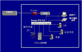 高性能交換機(選用AVAYA IPO412)作為接入設備,接入用戶的呼叫;