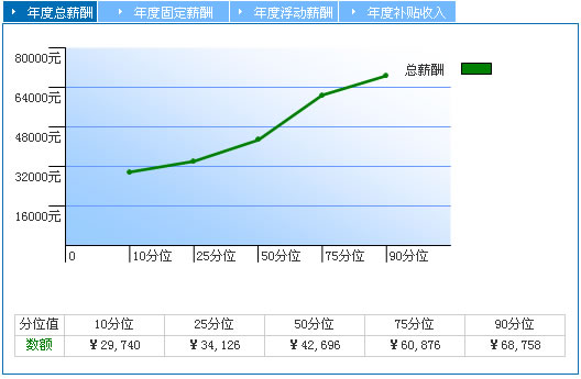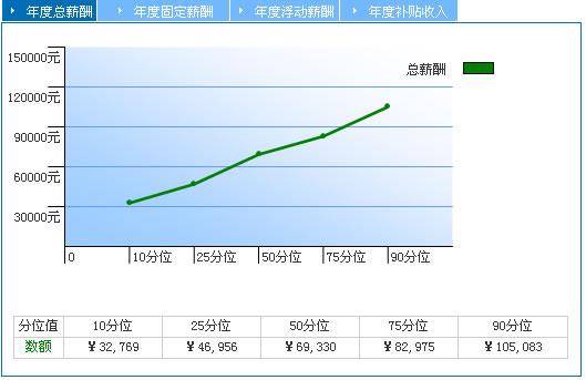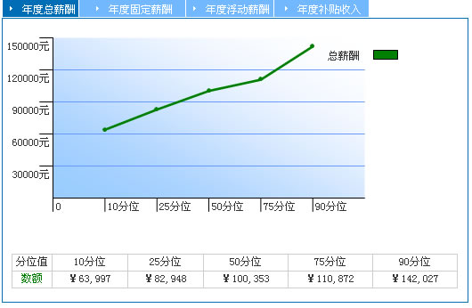 50分位 也稱為中位數(shù),表示有50%的數(shù)據(jù)小于此數(shù)值,反映市場的中等水平。相比于平均值,中位數(shù)不易受到極端值的影響,更加便于您了解市場的薪酬水平。