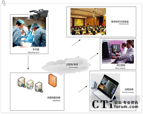 在手術(shù)示教系統(tǒng)幫助下,可以將學(xué)習(xí)過(guò)程和醫(yī)療診斷現(xiàn)場(chǎng)分開(kāi),學(xué)生可以在獨(dú)立的學(xué)習(xí)室中學(xué)習(xí),同時(shí)與現(xiàn)場(chǎng)的醫(yī)生進(jìn)行溝通,使得每個(gè)學(xué)生都能清楚地看到現(xiàn)場(chǎng)操作情況、醫(yī)學(xué)診斷影像和診治結(jié)果,避免一大群人擁擠在手術(shù)室中的現(xiàn)象,給手術(shù)醫(yī)療提供了一個(gè)寬敞、清靜的環(huán)境,也給年輕醫(yī)生提供了大量觀摩專家手術(shù)的機(jī)會(huì),為醫(yī)院培養(yǎng)后備人才提供了有力的保障。