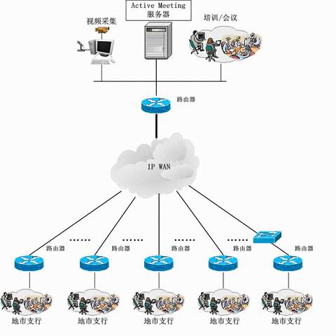 針對南京興業(yè)銀行的網(wǎng)絡(luò)和營業(yè)網(wǎng)點的分布情況,網(wǎng)動科技結(jié)合Active Meeting系統(tǒng)的特點,推薦了“網(wǎng)內(nèi)架Server,20個營業(yè)網(wǎng)點同步互動,后期冗余擴(kuò)充”的方案,采用這種解決方案的優(yōu)點非常明顯: