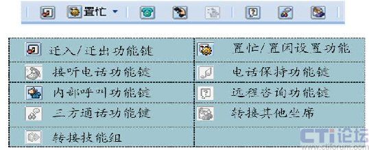 基于業(yè)務(wù)支撐平臺(tái)的JTAPI開發(fā)包所開發(fā)的Applet程序,實(shí)現(xiàn)座席員所需要的話務(wù)功能,可以和頁面進(jìn)行交互;軟電話條如下: