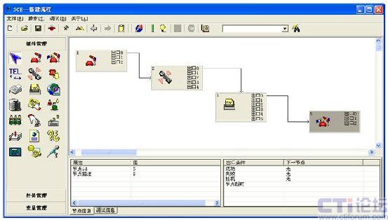簽入、簽出、置閑、置忙、應(yīng)答、掛機(jī)、保持/取回、咨詢/取消咨詢、兩路切換、轉(zhuǎn)接、三方會(huì)議、轉(zhuǎn)技能組、外呼等;豐富的業(yè)務(wù)系統(tǒng)功能包括:工單管理、知識(shí)庫、客戶管理、質(zhì)檢管理、外撥管理、業(yè)務(wù)統(tǒng)計(jì)報(bào)表、公告板、郵件管理、系統(tǒng)管理、前臺(tái)業(yè)務(wù)(坐席)功能、班長功能、數(shù)據(jù)同步、全程錄音、業(yè)務(wù)處理等,這些功能不作詳細(xì)介紹。IVR流程也是采用非常先進(jìn)的圖形化流程編輯器,通過簡(jiǎn)單的拖、拉圖標(biāo)方式即可實(shí)現(xiàn)對(duì)IVR流程的定制: