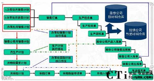從上圖可以看出,河套酒業(yè)包括股份公司、生產(chǎn)公司、銷售公司、辦事處等獨立核算的實體或分子公司,但是實際上整個供應鏈系統(tǒng)是完全集成在一起的。孤立的解決上述問題,只能帶來重復工作量、公司間相同業(yè)務不一致以及滯后、市場反應不及時等問題。因此跨公司實體,實現(xiàn)銷售計劃、生產(chǎn)計劃、采購計劃三大計劃集成、物流集成是白酒類生產(chǎn)企業(yè)供應鏈系統(tǒng)信息化的關鍵。