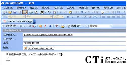 通過與ERP 集成的預警平臺,河套酒業(yè)可以根據(jù)需要監(jiān)控任意環(huán)節(jié),向相應管理者發(fā)布預警信息?梢葬槍ν粋業(yè)務中不同的業(yè)務動作定義監(jiān)控,可以集中監(jiān)控,也可以根據(jù)管理層的要求對特定條件異常業(yè)務進行監(jiān)管。在異常業(yè)務發(fā)生的同時,通過郵件或短信等指定形式主動向監(jiān)管進行報告。如下圖對整體應收帳款超過指定額度的預警。
