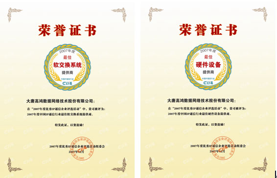 日前,由C114中國通信網(wǎng)主辦的“2007年度優(yōu)秀IP通信企業(yè)評(píng)選活動(dòng)”圓滿結(jié)束。大唐高鴻數(shù)據(jù)網(wǎng)絡(luò)技術(shù)股份有限公司(以下簡(jiǎn)稱“大唐高鴻”)憑借雄厚實(shí)力喜獲“2007年度中國IP通信行業(yè)最佳軟交換系統(tǒng)提供商”和“2007年度中國IP通信行業(yè)最佳硬件設(shè)備提供商”兩項(xiàng)大獎(jiǎng)。這是大唐高鴻繼2007年4月榮獲中國VoIP論壇“2006年最佳中繼網(wǎng)關(guān)提供商”和“2006最佳VoIP解決方案提供商”兩項(xiàng)大獎(jiǎng)之后的又一次實(shí)至名歸。