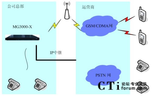 4、公司員工在公司外部時,可以用手機通過撥打公司“移動”總機,再通過IP中繼,撥打目的固定電話號碼或者移動電話號碼。即間接的把話務轉移到了IP中繼呼出上,在一定程度上節(jié)省了通話費用。
