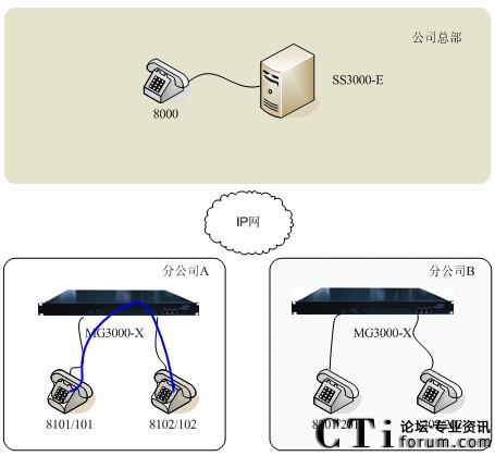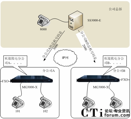 圖三:方案3:SS3000-E與IPPBX MG3000-X聯(lián)合組網示意圖