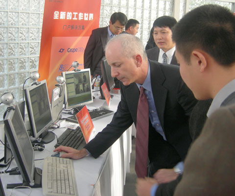 11月24日,微軟信息工作者解決方案媒體活動在北京隆重召開,微軟(中國)有限公司邀請其合作伙伴共同參與此項盛事,北京華緯訊公司作為受邀的九家核心合作伙伴之一,攜“快視通(Quick Video Communicator)”視頻會議系統(tǒng)與微軟共同展示了基于Office System的協(xié)同解決方案,致力于為商務人士打造完美的信息化協(xié)同辦公平臺,以實現(xiàn)個人、團隊與公司協(xié)同辦公的無縫連接。