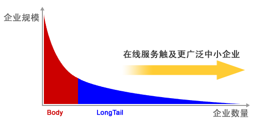 以上廠商的網(wǎng)絡(luò)廣告服務(wù)、電子商務(wù)服務(wù)都面向于中小企業(yè)市場(chǎng),而最近興起的SaaS(在線(xiàn)企業(yè)軟件服務(wù))也是希望通過(guò)互聯(lián)網(wǎng)服務(wù)的方式占領(lǐng)企業(yè)軟件市場(chǎng)的“長(zhǎng)尾”。