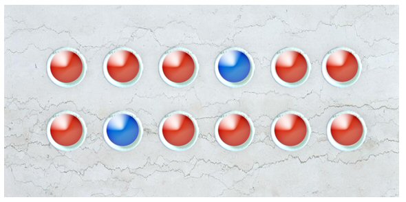 某一個(gè)呼叫中心,在它廁所上頭,裝了這樣一個(gè)裝置。這裝置如下面的圖所示,有12個(gè)燈號(hào),燈號(hào)有兩種顏色,一種是紅色,一種是藍(lán)色,有時(shí)會(huì)變成紅色,有時(shí)又會(huì)變成藍(lán)色。