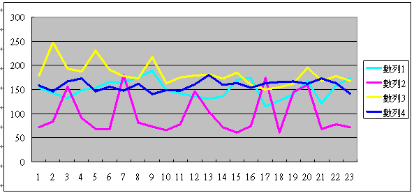 這里的四條線,分別代表了一個(gè)座席員的情況,黃色這條線代表的座席員在1號(hào)的時(shí)候,平均通話時(shí)長(zhǎng)差不多是180秒,二號(hào)增加到250秒,之后慢慢減少到17號(hào)的150秒,以及23號(hào)的170秒。