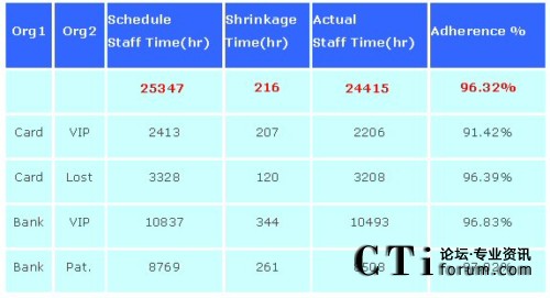 缺點是,此報表顯示出的只是表定出席人數,而非實際現場出席人數,故在呼叫中心現場管理時,可導入具有遵時異常管理功能或座席監(jiān)控模塊之人力資源優(yōu)化系統(tǒng)(例如:Grandsys