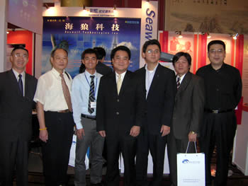 2005年5月18日在北京長(zhǎng)城飯店召開的《2005中國(guó)IP語(yǔ)音網(wǎng)絡(luò)、軟交換及SIP研討會(huì)暨展覽會(huì)》上,海狼科技展臺(tái)前人頭攢動(dòng),很多商家對(duì)海浪科技技術(shù)和產(chǎn)品的表現(xiàn)感到相當(dāng)滿意,并有新加坡、臺(tái)灣客戶現(xiàn)場(chǎng)購(gòu)買產(chǎn)品。