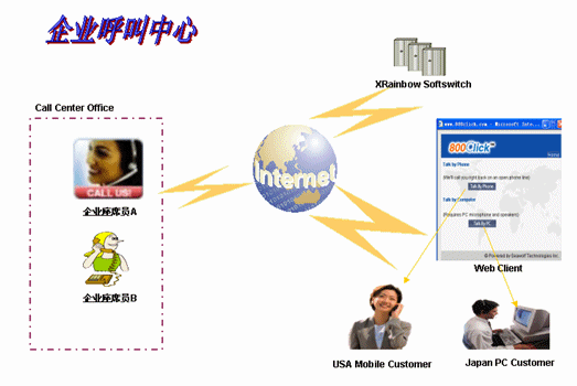 企業(yè)呼叫中心通過WEB方式解決可以提高10倍成交機(jī)會(huì),您的客戶將享受“在線客服”的免費(fèi)電話服務(wù)。很多人在訪問商業(yè)網(wǎng)站的時(shí)候可能都有過這樣的經(jīng)歷:覺得網(wǎng)上提供的資料不夠詳細(xì),希望通過詢問客服人員來獲取更細(xì)致和個(gè)性化的信息。用戶只要點(diǎn)擊一下網(wǎng)頁上服務(wù)中心的鏈接就可以和中心的客服人員進(jìn)行直接的溝通。用戶甚至不需要知道服務(wù)中心的號(hào)碼。使用戶獲得更為有效的直接通話服務(wù)。為您的網(wǎng)站建立起專業(yè)的呼叫中心,既是網(wǎng)絡(luò)推廣、網(wǎng)絡(luò)營銷的助手又是客戶關(guān)系管理的專家。