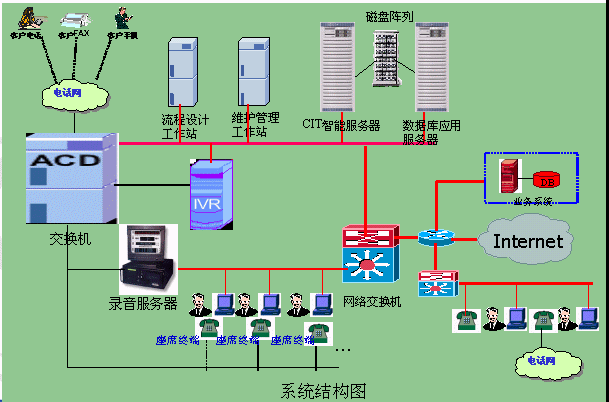 接入平臺采用呼叫中心專用交換設備,局網帶寬100M