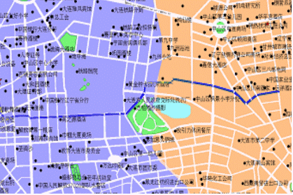 - 最短路徑規(guī)劃:根據(jù)用戶輸入的起始地址、目的地址規(guī)劃出一條最短路線,并在電子地圖上以不同顏色顯示。