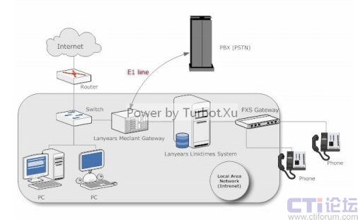 眾所周知,我們在進(jìn)行語音通信時,最為重要的就是語音的質(zhì)量,有人會提出,這種以IP傳送語音的方式不能保證語音質(zhì)量,當(dāng)然,這種擔(dān)憂是有所必要的,但如果你仔細(xì)看看上面的拓?fù)鋱D后會發(fā)現(xiàn),這個方案中用到IP的地方都是在局域網(wǎng)中處理的,并沒有牽扯到Internet