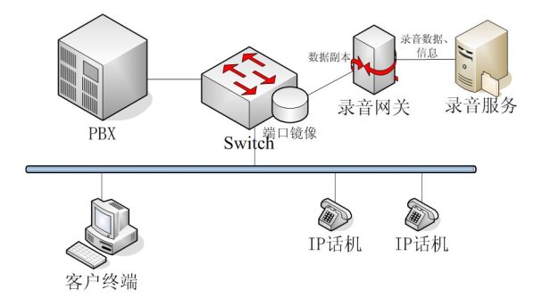 NETLOG VOIP語音記錄系統(tǒng)采用端口鏡像技術,在要錄音網絡的PBX上將所有的數據包生成一個副本,在不影響主線傳輸的基礎上,把副本傳送到錄音網關RG(Record
