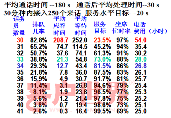 服務(wù)水平=SL(座席數(shù),服務(wù)目標基準時長,通話量,服務(wù)時長)
