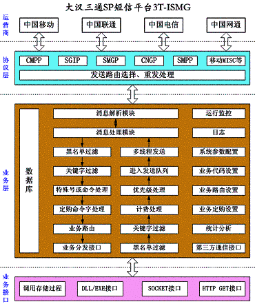一、大漢三通 SP 短信平臺 3T-ISMG 功能模塊