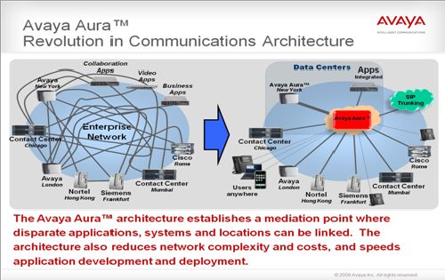 在當(dāng)今經(jīng)濟(jì)形勢不容樂觀的背景之下,很多的企業(yè)正在實(shí)施全球的整合,比如說一家企業(yè)可能使用Avaya設(shè)備并放在倫敦,香港的北電設(shè)備,和法蘭克福的西門子設(shè)備,這樣的一個(gè)格局也使得Aura這樣的平臺(tái)能夠帶來很大的管理便利性。