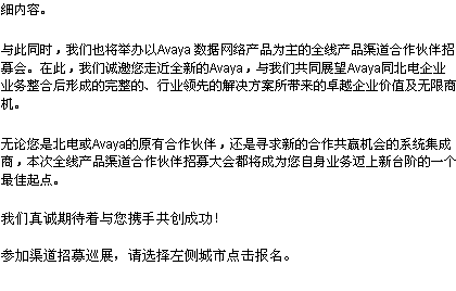 Avaya/Nortel整合產(chǎn)品線渠道招募會(huì)10城市