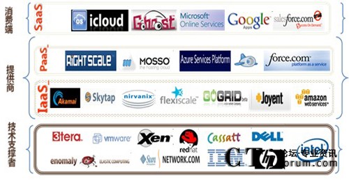 除此之外,云計(jì)算也有CaaS(Communication as a Service,通信即服務(wù))、DaaS(Data as a Service,數(shù)據(jù)即服務(wù))等分類形式。業(yè)界主流的設(shè)備廠商、服務(wù)提供商都在定位自己在云中的位置,并制定自己的云戰(zhàn)略。