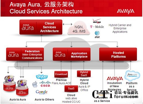 - 當(dāng)其他廠商還在爭(zhēng)論公有云和私有云的優(yōu)劣時(shí),Avaya已經(jīng)開始部署企業(yè)的私有云—Avaya Aura 和運(yùn)營(yíng)商的公有云之間如何和諧共處;企業(yè)用戶的統(tǒng)一通信功能完全基于”按需服務(wù)激活”模式;