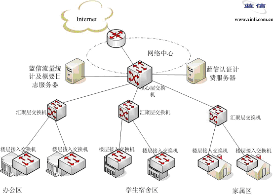 為充分利用802.1x的優(yōu)勢,也為避免網(wǎng)關式認證計費設備并發(fā)用戶數(shù)小、擴容較難、存在單點故障等問題,信利工程師經(jīng)過長時間的努力開發(fā),研發(fā)出擁有自主產(chǎn)權的藍信流量統(tǒng)計系統(tǒng),通過與各旁路式認證計費軟件的配合即可輕松實現(xiàn)按流量來計費。