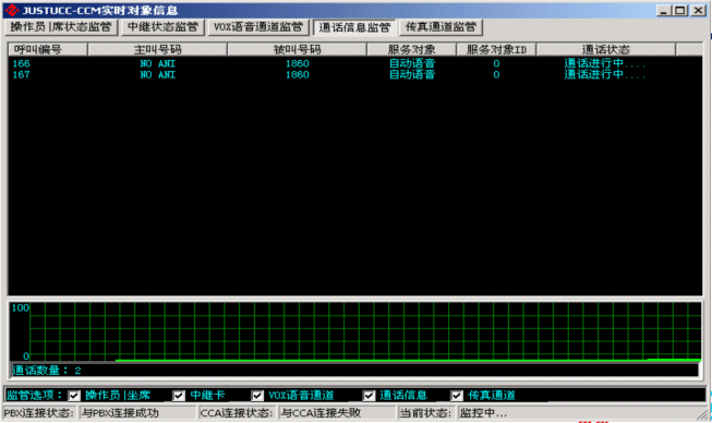 監(jiān)聽所有業(yè)務(wù)座席的狀態(tài),通話并可以錄音