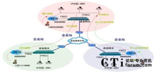- 之間通話采用CNG系列網(wǎng)關(guān)免費通話,通過VoIP撥打PSTN低話費,節(jié)省成本。
